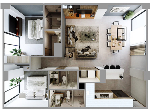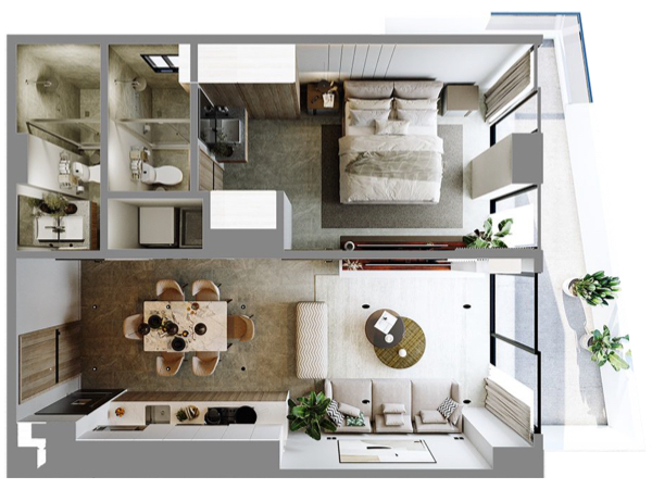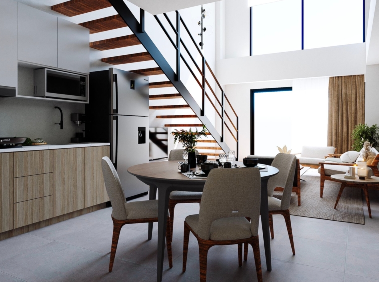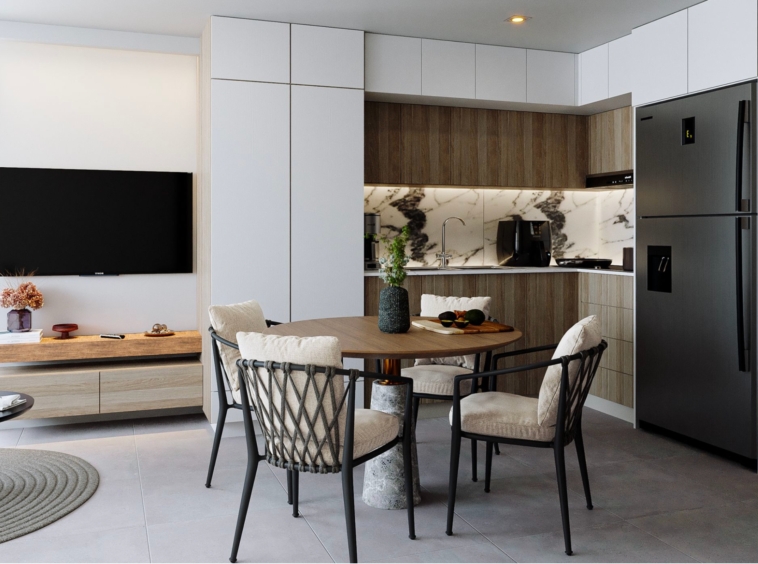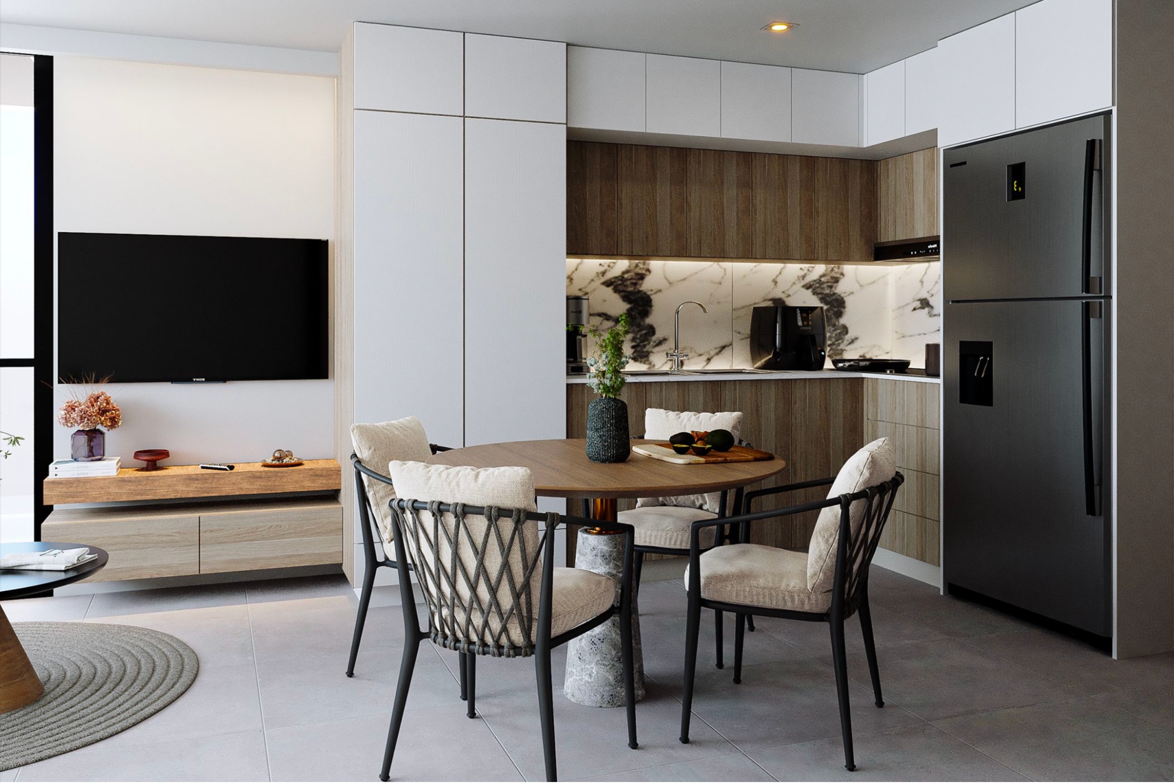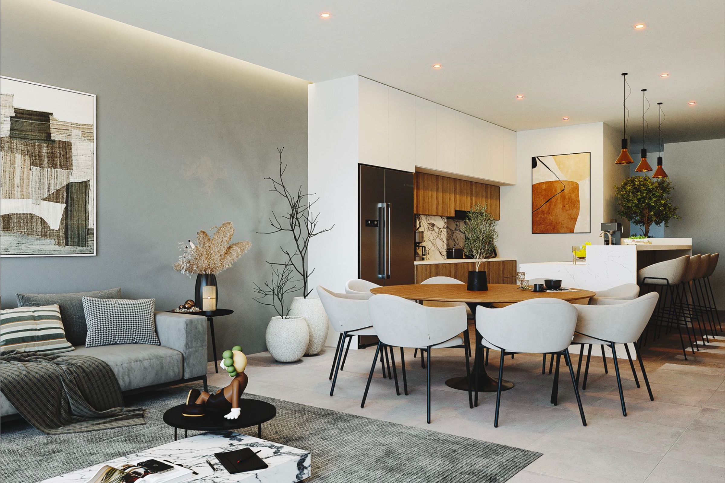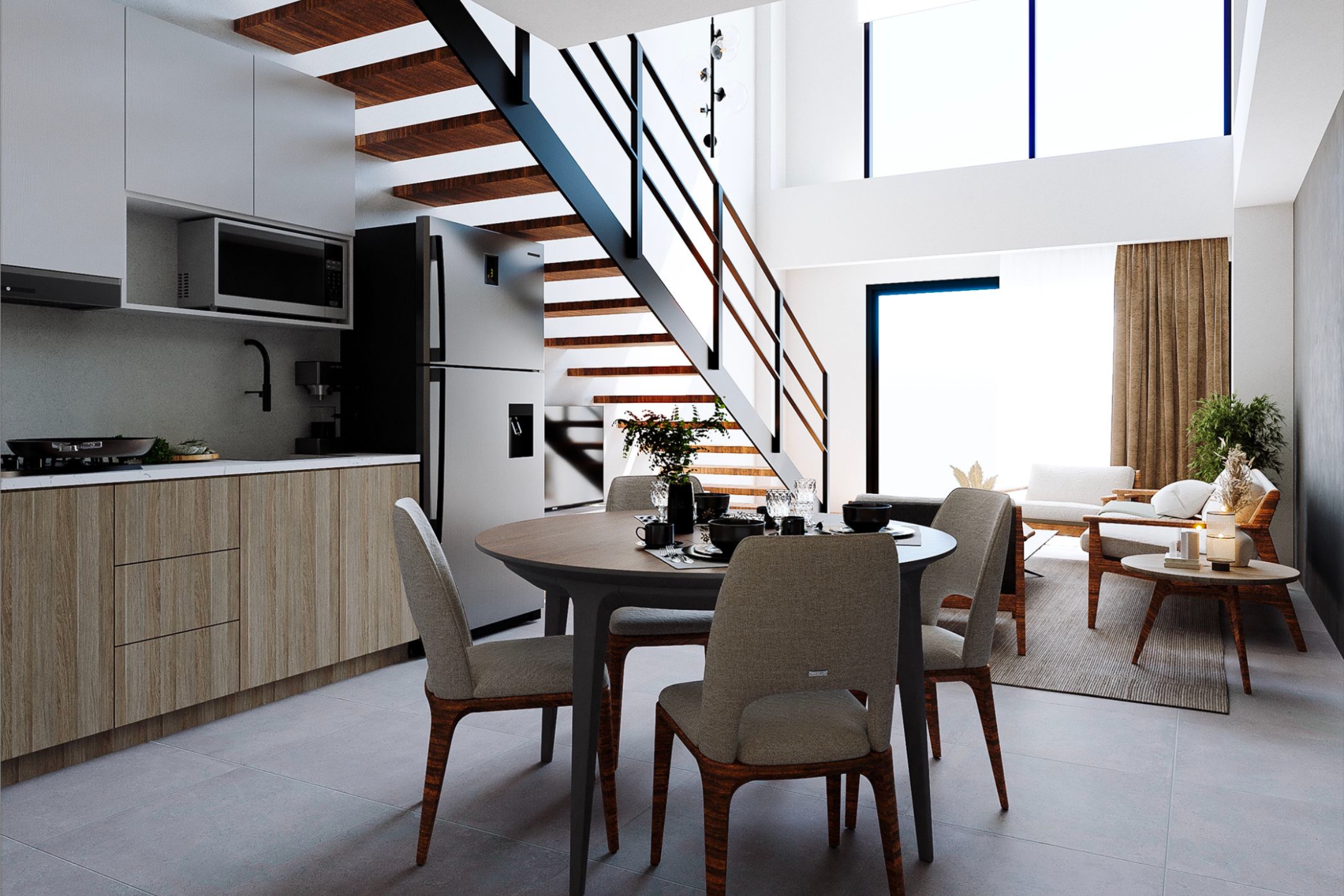 Terraza - Sala - Comedor - Cocina - Centro de Lavado | $5.585.183 MXN (*) Precio de la propiedad en Moneda Mexicana (MXN). Valor aproximado en EURO variable según el cambio oficial al día de consulta y compra.