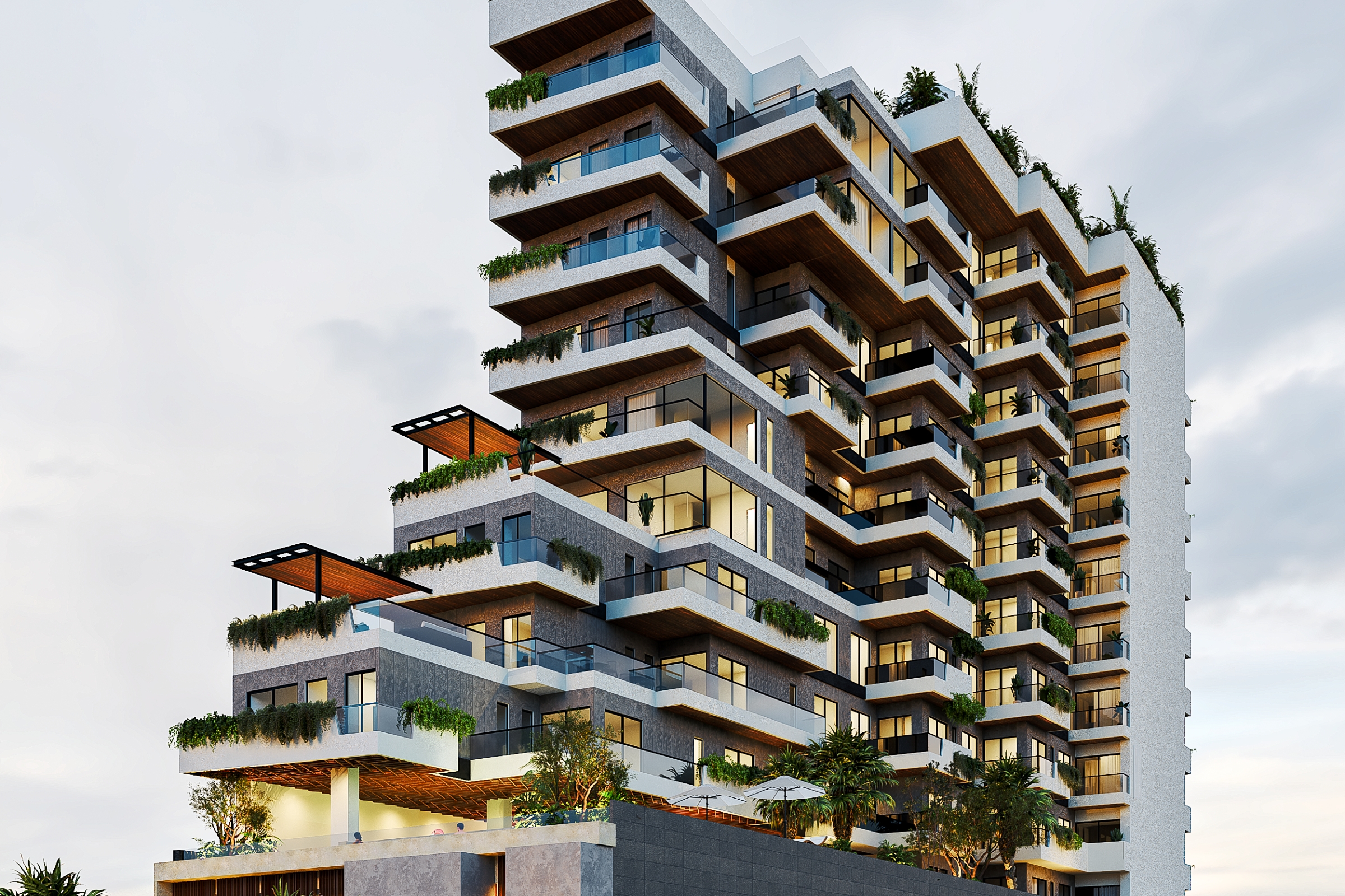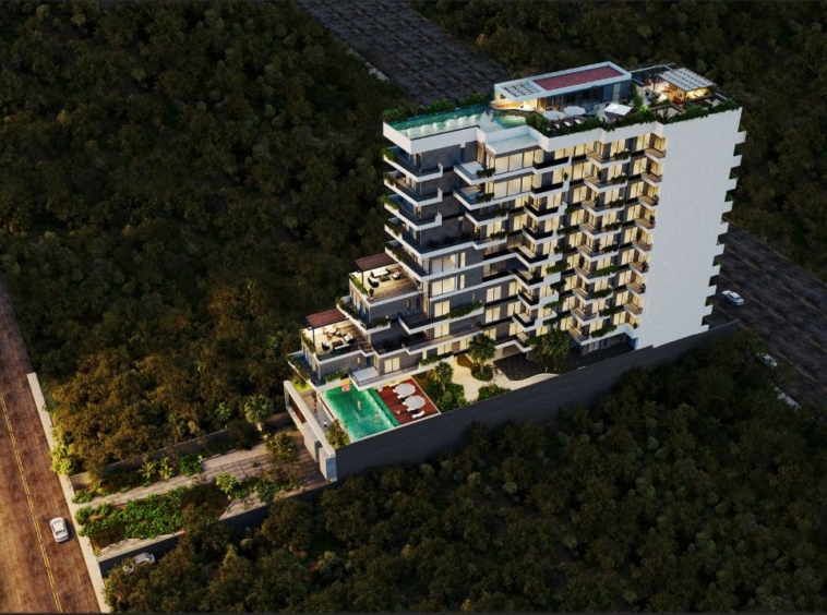 Este desarrollo cuenta con una torre de 10 niveles con 54 departamentos que van desde 65 m² hasta 211 m² con vista al mar y a la reserva natural. Además, ofrece un estacionamiento de 2 niveles con 68 cajones y una selección de amenidades diseñadas para el confort y disfrute de sus residentes, incluyendo: