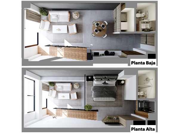 Planta baja: Medio baño - Terraza - Sala - Comedor - Cocina - Centro de lavado + Planta alta: 1 dormitorio - 1 Baño | $4.773.019 MXN (*) Precio de la propiedad en Moneda Mexicana (MXN). Valor aproximado en EURO variable según el cambio oficial al día de consulta y compra.